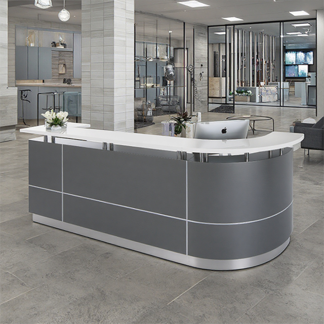 Escritorio de piedra artificial, Proceso de pintura de recepción, recepción curva, empresa de mostradores de pintura de horneado