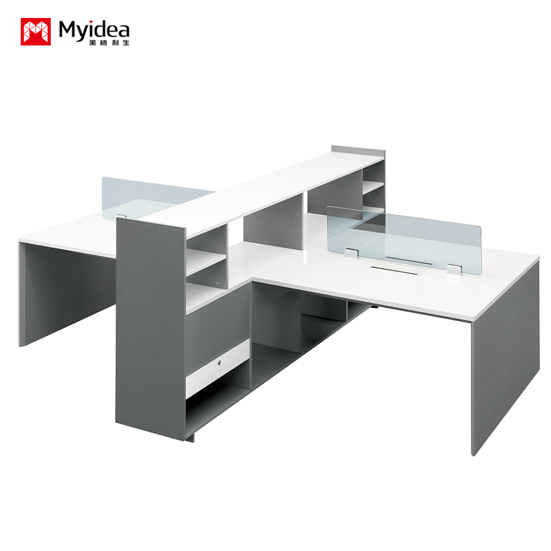 escritorio de almacenamiento de gran capacidad personalizable con gabinete, diseño de escritorio de computadora de oficina para 2 y 4 personas, partición de pantalla, escritorio para personal