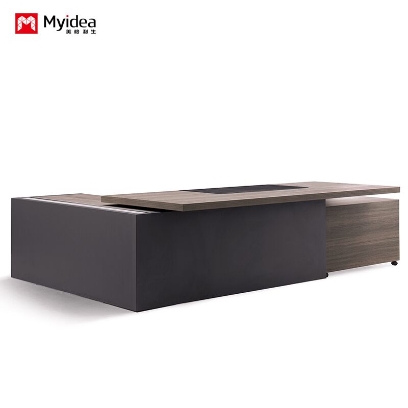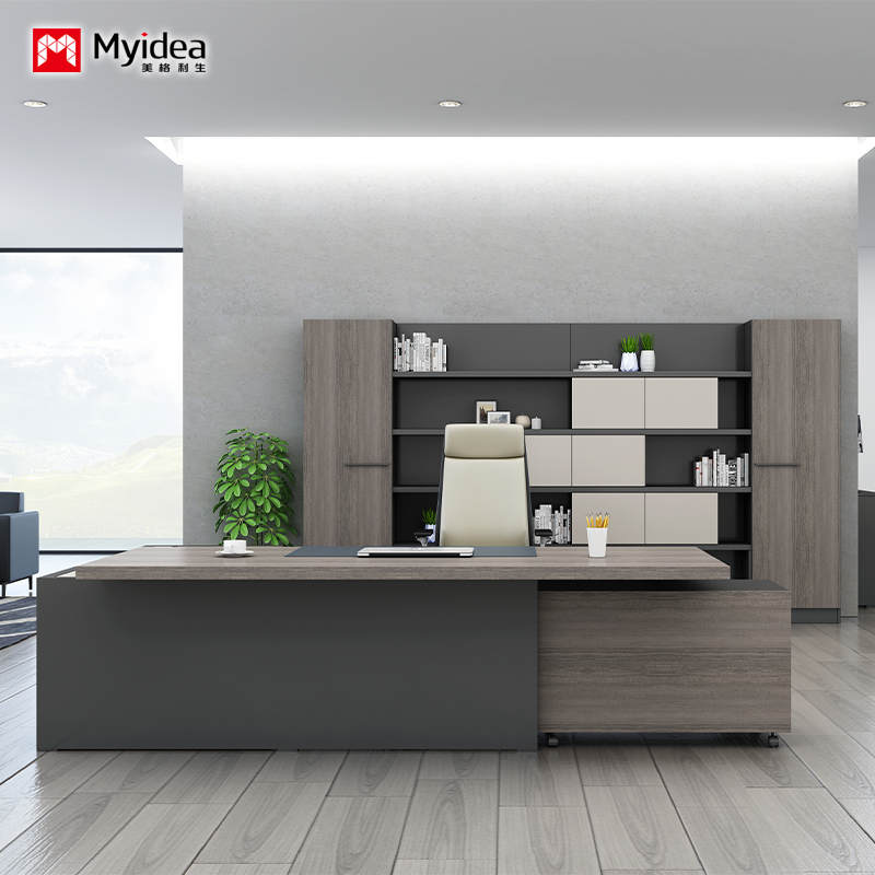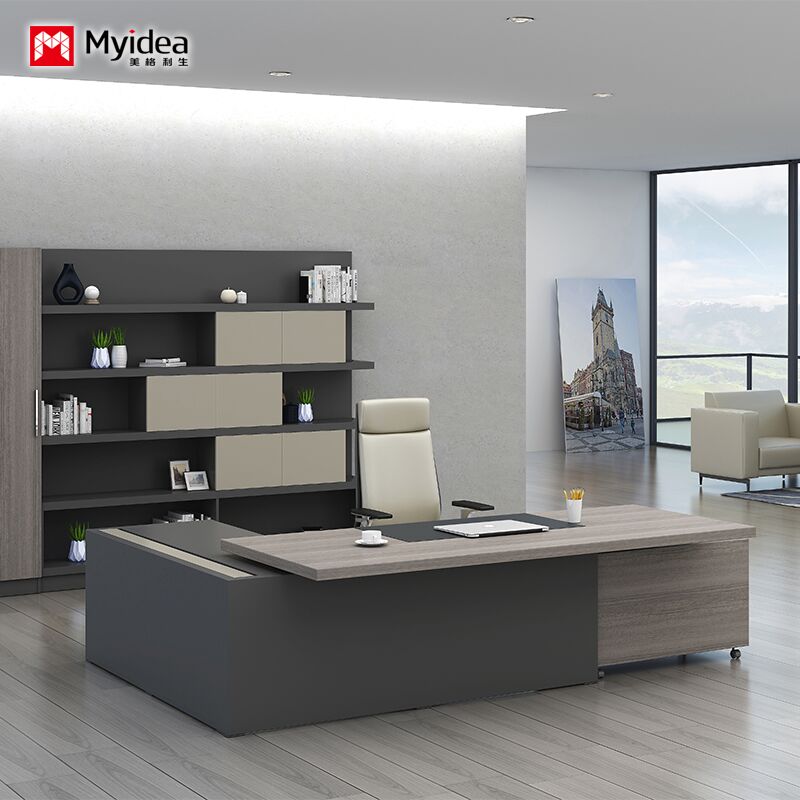 Escritorio de oficina de supervisor de gerente de personalización en forma de L, escritorio de oficina independiente con gabinete y caja de cables oculta, escritorio de gerente