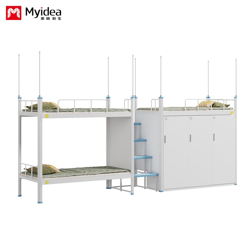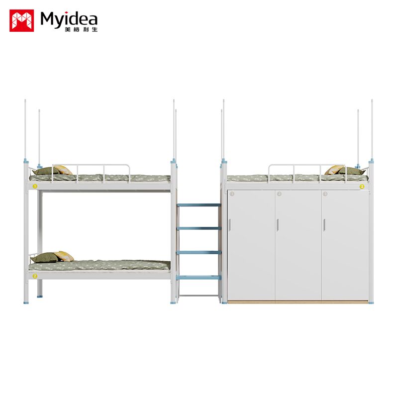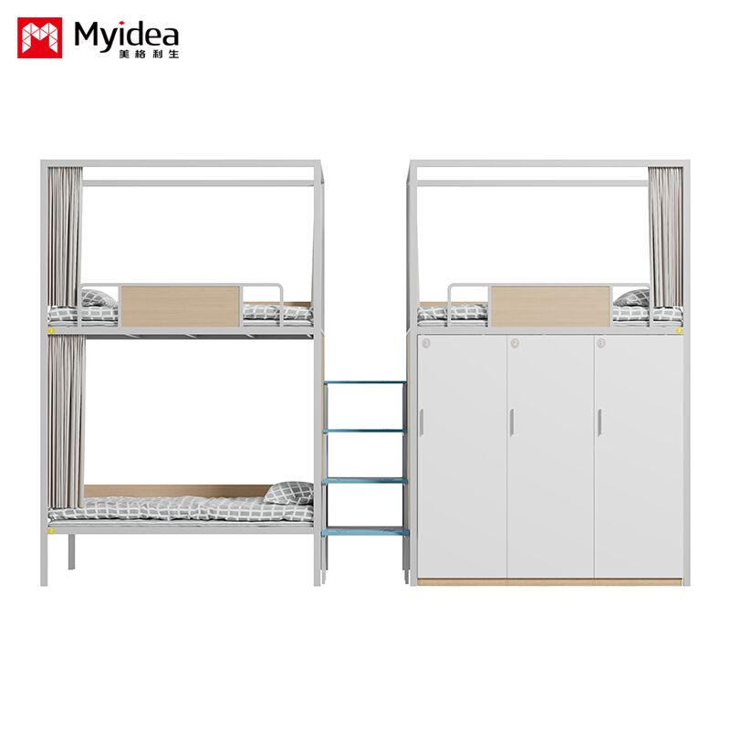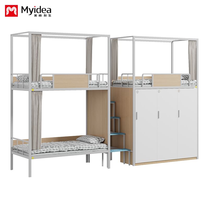 Dormitorio Cama para tres personas con armario, escalera de escalera de luz nocturna segura, barandilla de guardia alta, cortina de cama, cama de dormitorio escolar