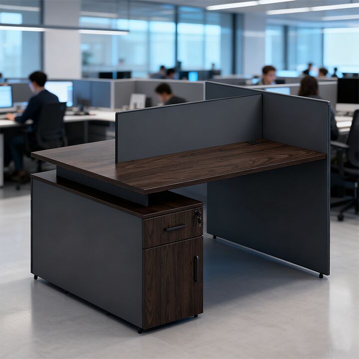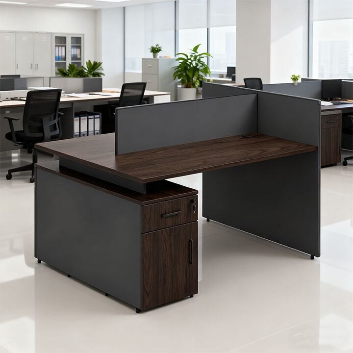 Escritorios de trabajo modernos de madera con espacio de almacenamiento enfrentados, diseño independiente, fácil montaje